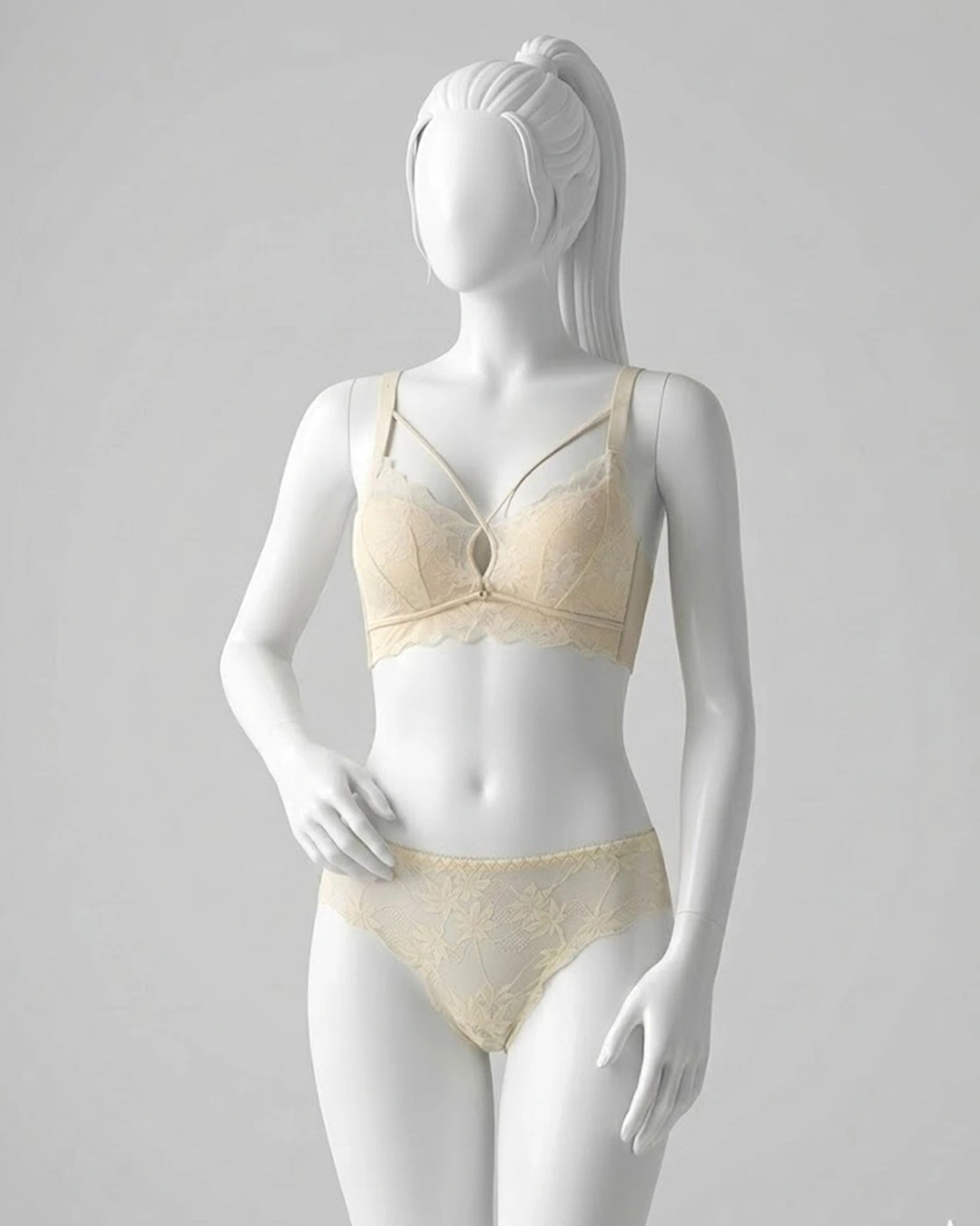 Matching Low-Rise Bikini Panties – Coordinating lace bikini brief with soft elastic edges and a flattering low-rise cut completes the set for a polished, feminine look.