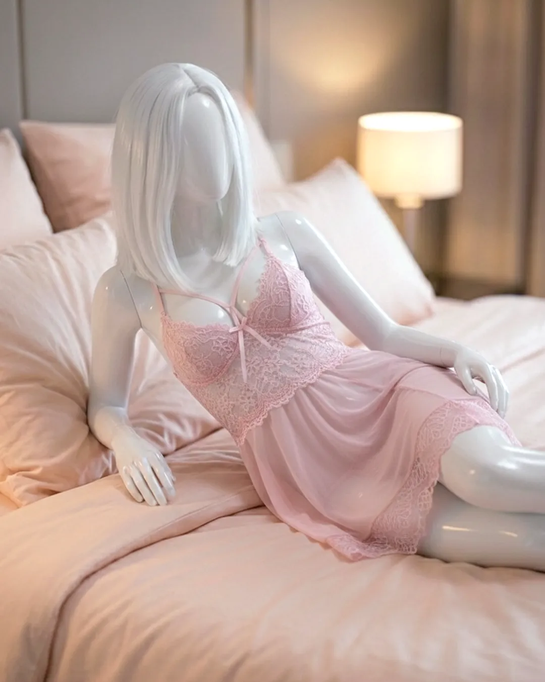 Designed to capture romantic moments, this lace mesh babydoll nightgown brings together bridal elegance and sexy detailing. Perfect for honeymoons, anniversaries, and intimate evenings, it creates a feminine silhouette with floral lace cups and a soft, sheer skirt.