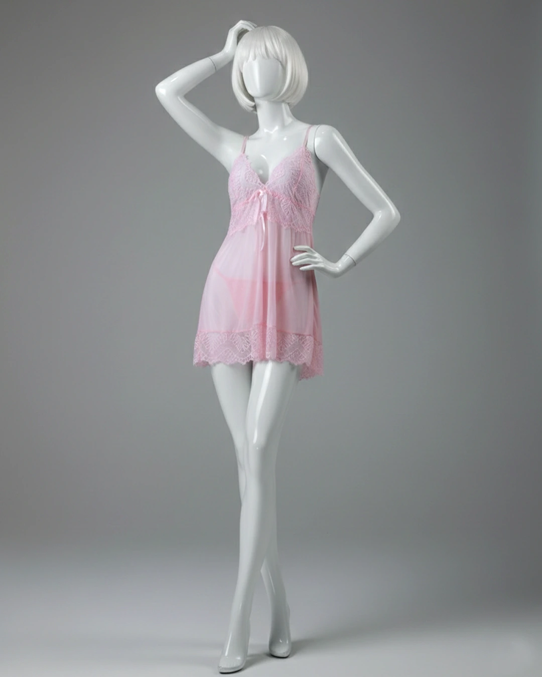 Made from lightweight polyester mesh that feels smooth against the skin, the dress remains breathable and airy for comfortable nightwear — ideal for warm weather or all-season lounging.
