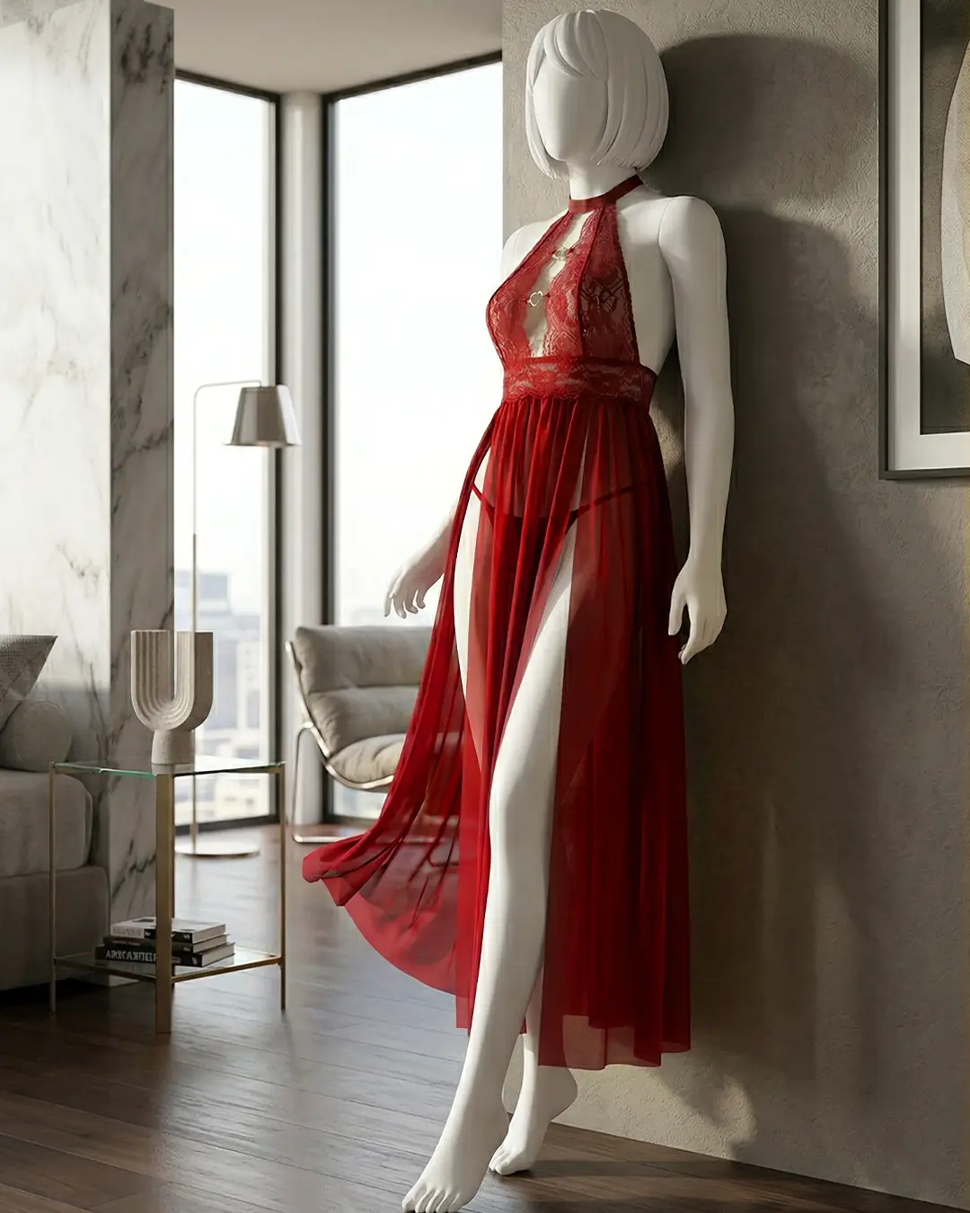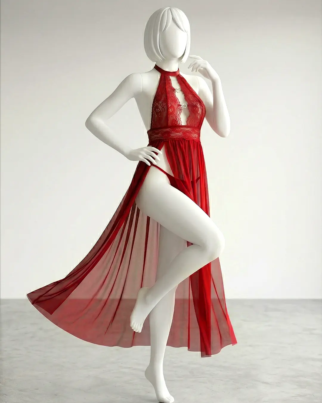 Step into a blend of sultry style and breathable comfort with this long mesh lace lingerie dress. Designed with sheer paneling and delicate lace trim, the silhouette drapes elegantly for a seductive, chic look perfect for intimate nights or boudoir photography.