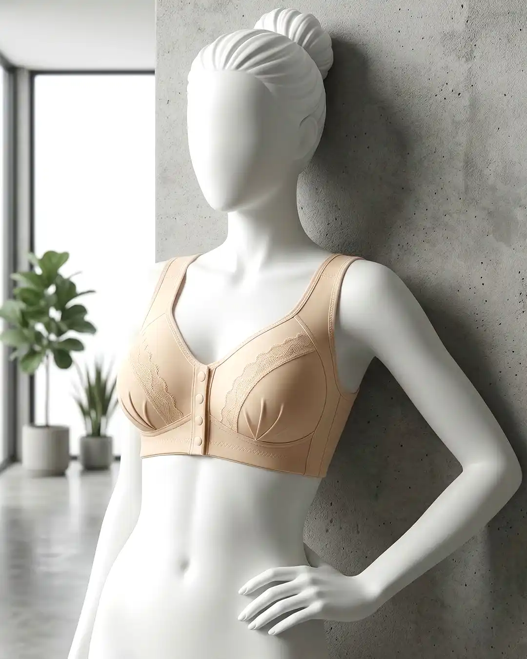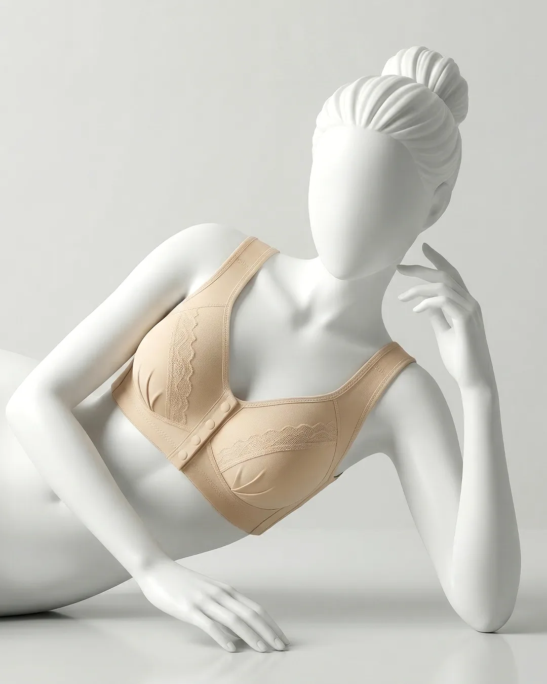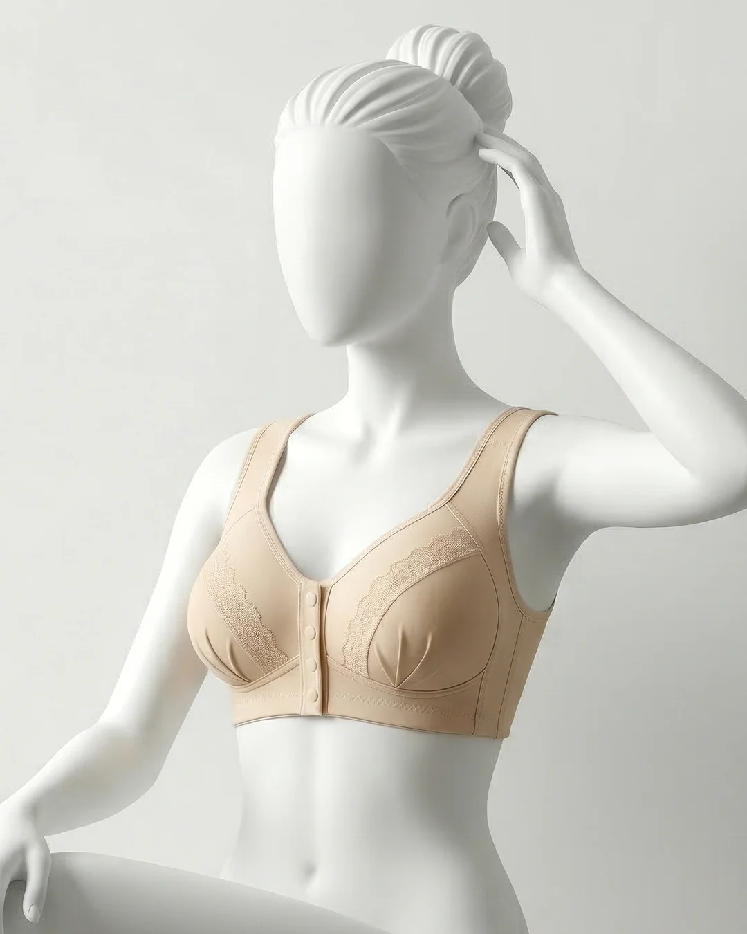 Thin molded cups with gentle minimizing effect: Three-quarter (3/4) molded cups provide light shaping and coverage, helping visually reduce bust projection while creating a smoother, more balanced silhouette under clothing.