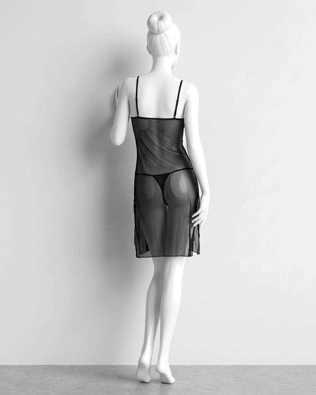 SEDUCTIVE STRAPPY MESH DESIGN – This sexy nightdress (8137#) features a sheer mesh body with slim horizontal cut-out stripes on the front, creating a bold, eye-catching look while still feeling light and comfortable.