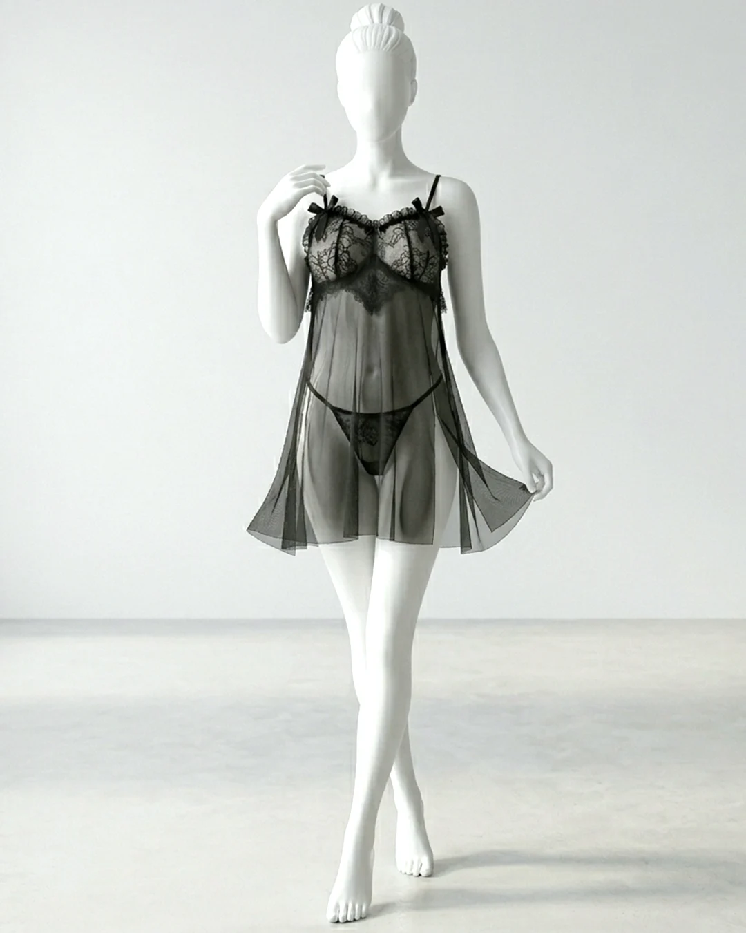 KNEE-LENGTH SHEER SKIRT – A lightweight, knee-length hem adds elegance and a bit more coverage than ultra-short babydolls, making it a great option for romantic evenings or relaxing at home.