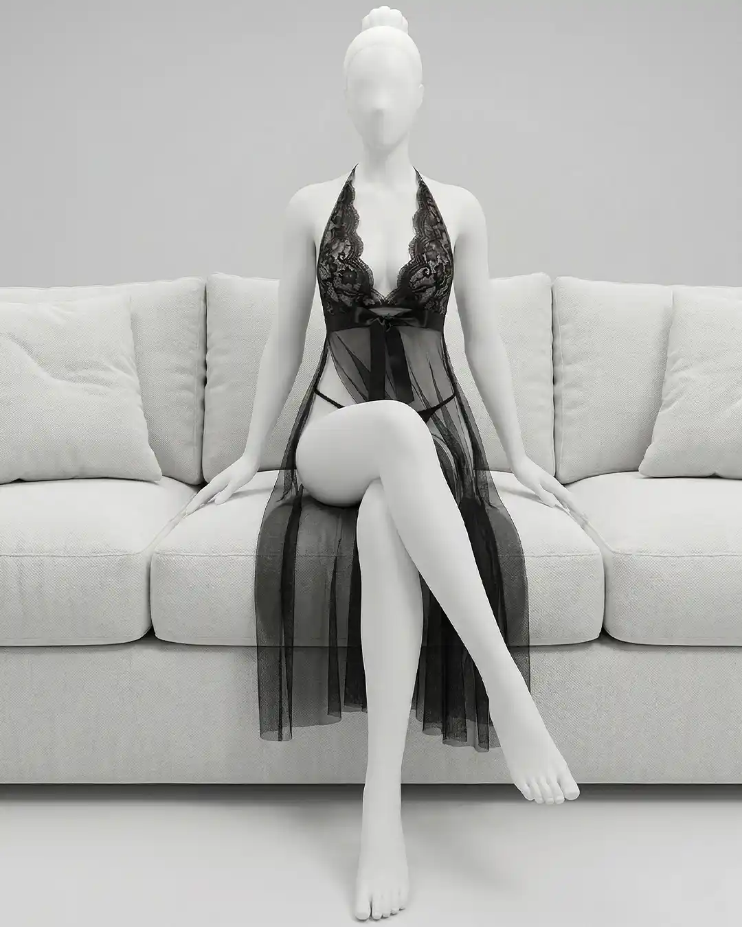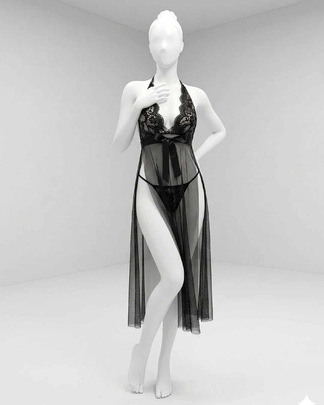 Soft Sheer Mesh & Lace – Made from lightweight polyester-spandex mesh with delicate lace cups, this long robe drapes smoothly over the body for a soft, breathable feel that’s comfortable all night.